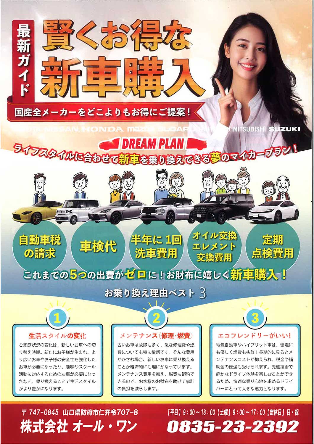 山口県防府のカーショップ「オール・ワン(ALLONE)」は、新車・中古車販売をはじめ、